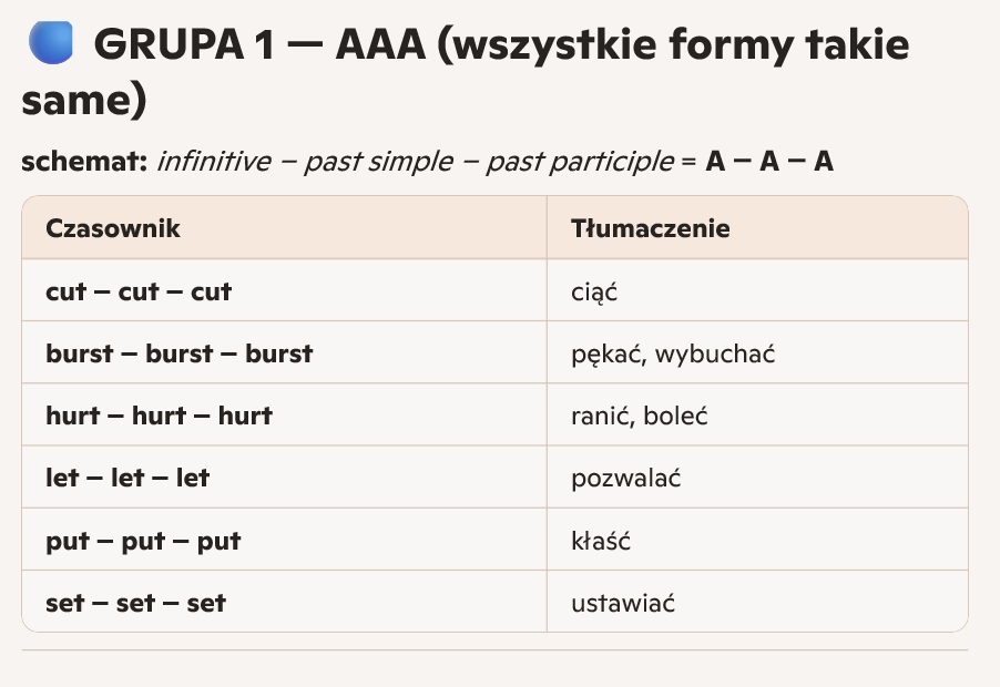 GRUPA 1 — AAA (wszystkie formy takie same)