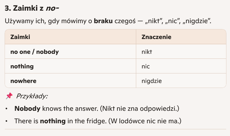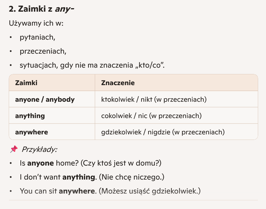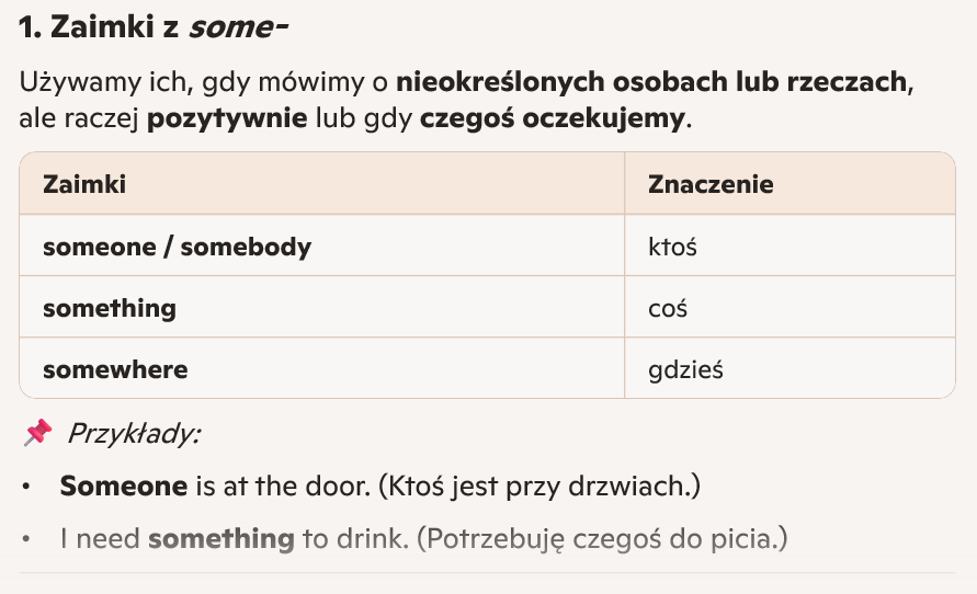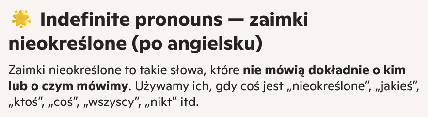 Indefinite pronouns — zaimki nieokreślone (po angielsku)