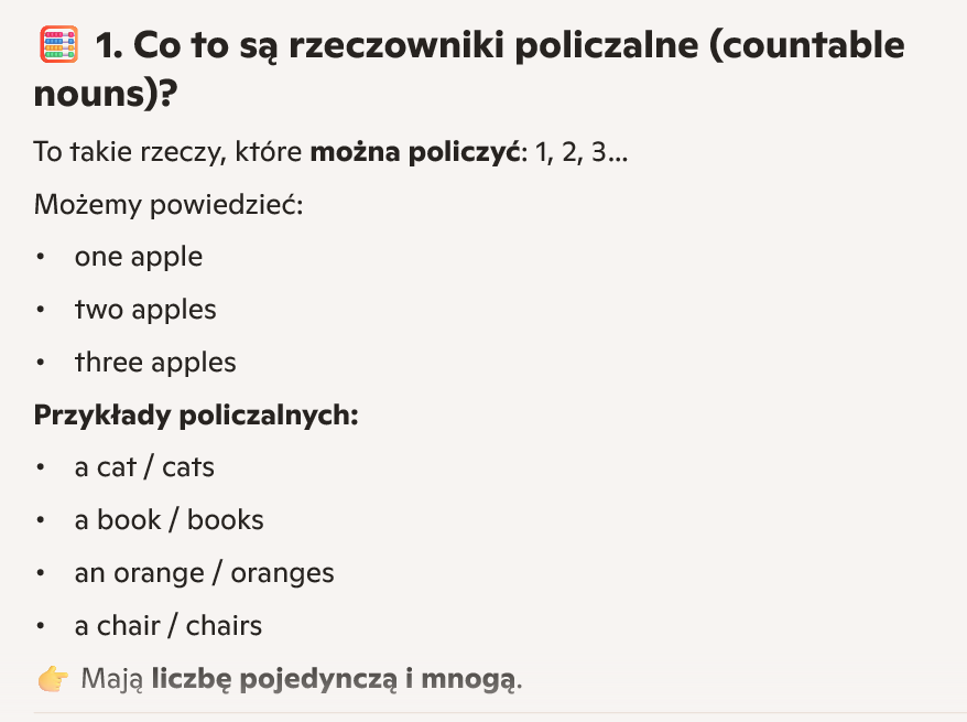 Co to są rzeczowniki policzalne (countable nouns)?