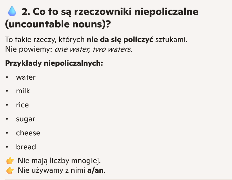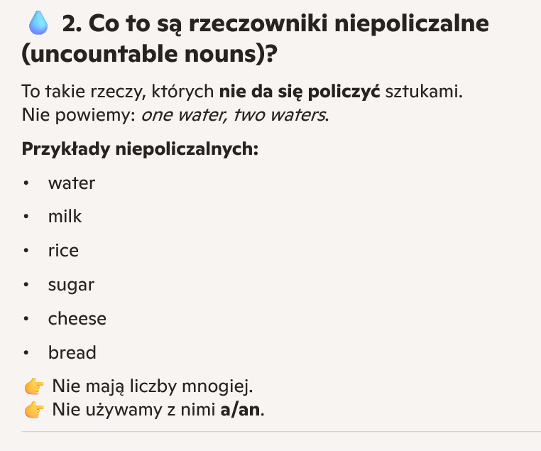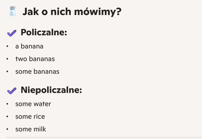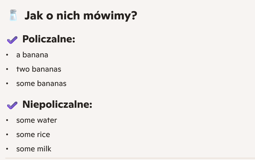 Rzeczowniki policzalne i niepoliczalne