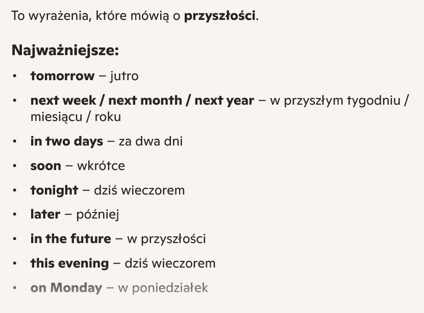 TIME EXPRESSIONS dla Future Simple (will)