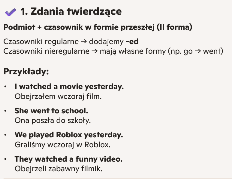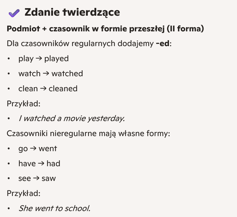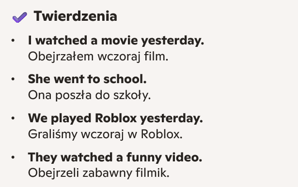 Zdania z Past Simple + tłumaczenie