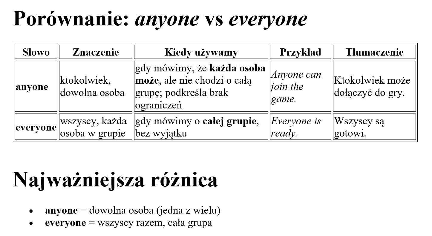 Różnica pomiędzy anyone i everyone