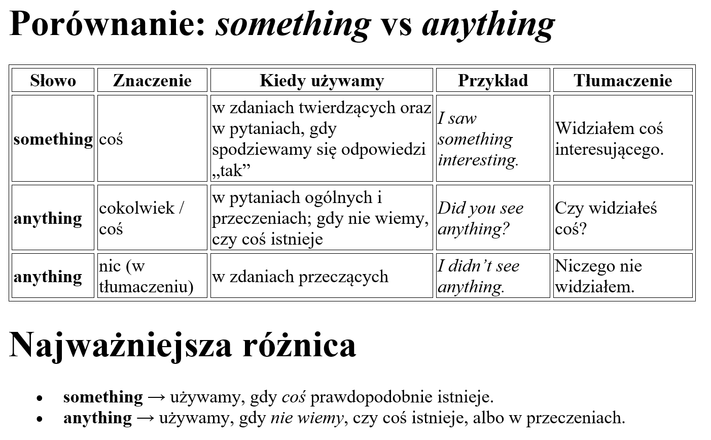 Porównanie: something vs anything