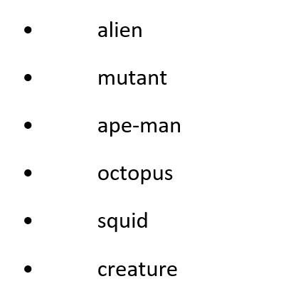 1. Which words are the names of creatures?