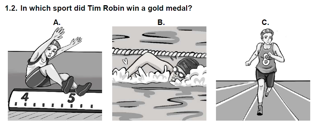 Zapiszcie obok odpowiedzi jedno lub dwa słowa (po polsku lub angielsku), które były waszym DOWODEM na poprawność wyboru (np. ‘long jump’).”