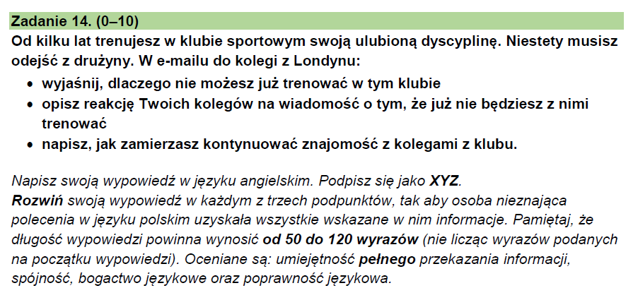 I have to leave my sports club because my parents changed my weekly schedule and I can’t go to training anymore. My teammates were surprised and a bit sad when I told them the news. We want to stay in touch, so we will write to each other online and meet when I have some free time.