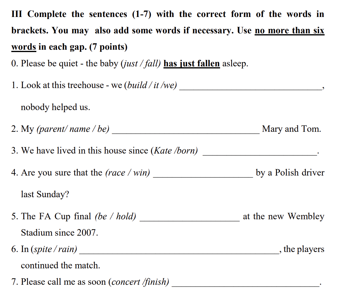 0. Please be quiet – the baby (just / fall) _____________________ asleep.