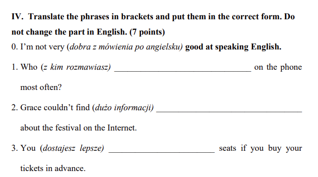 0. I’m not very (dobra z mówienia po angielsku) ____________________________ good at speaking English.