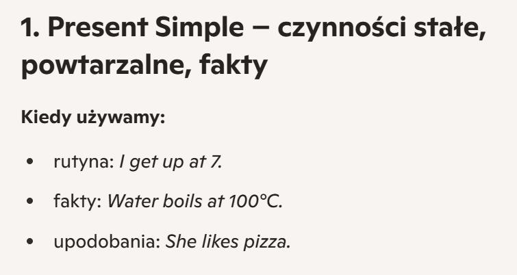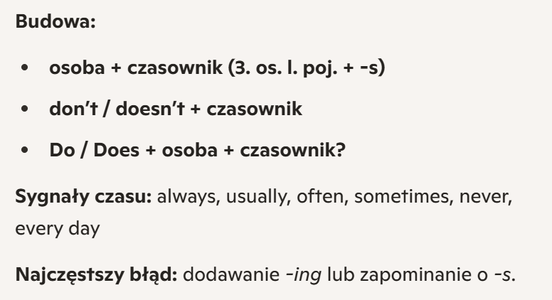 1. Present Simple – czynności stałe, powtarzalne, fakty