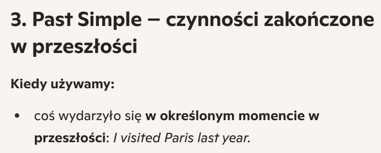 3. Past Simple – czynności zakończone w przeszłości