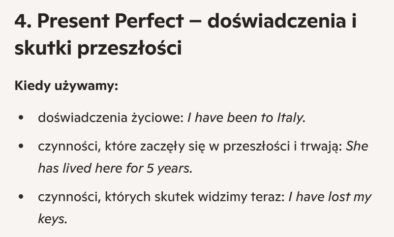 4. Present Perfect – doświadczenia i skutki przeszłości