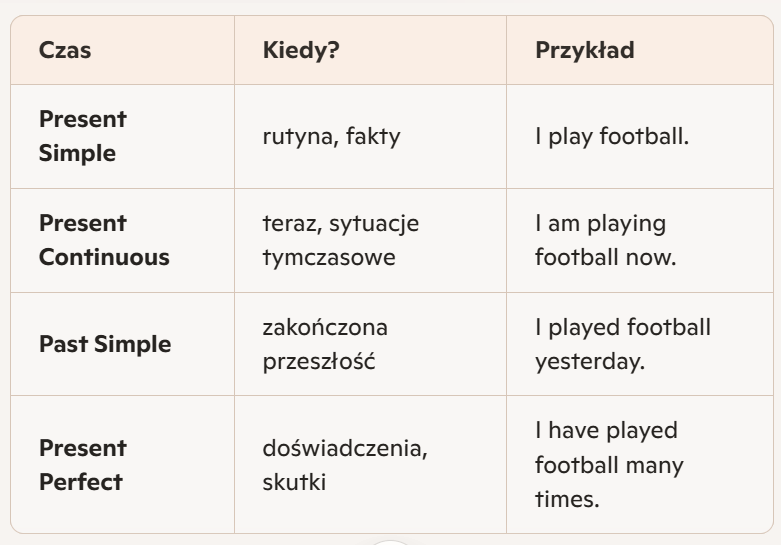 Rozróżnianie 4 podstawowych czasów angielskich – lekcja powtórkowa dla klasy 8